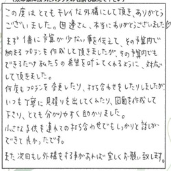 この度はとてもキレイな外構にして頂きありがとうございました。