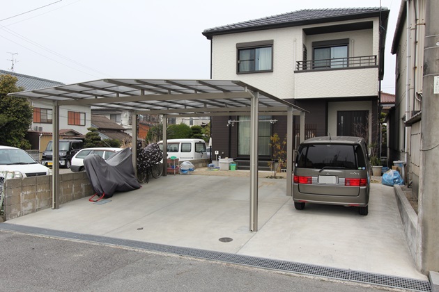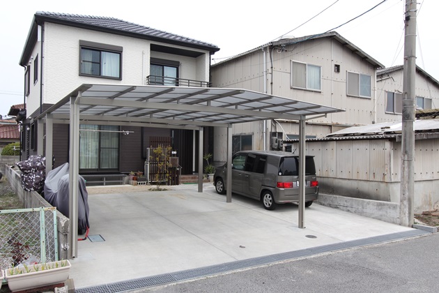 通常より奥行きのある2台分(58-54)のカーポートに延長タイプ(14-54)を足した7.2mの奥行きのある大きめのカーポートを設置しました。