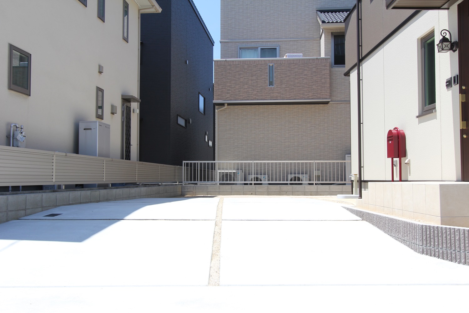 進入路の幅いっぱいに駐車スペースを設けました