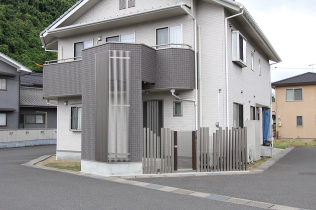 建物・玄関ドアのイメージに合わせて、角柱・門扉を選びました