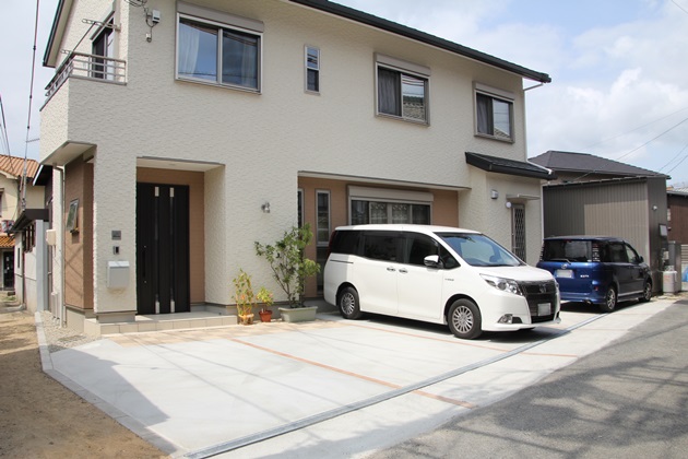 敷地全体にコンクリートを施工し、駐車スペースの使い勝手を優先にしました!