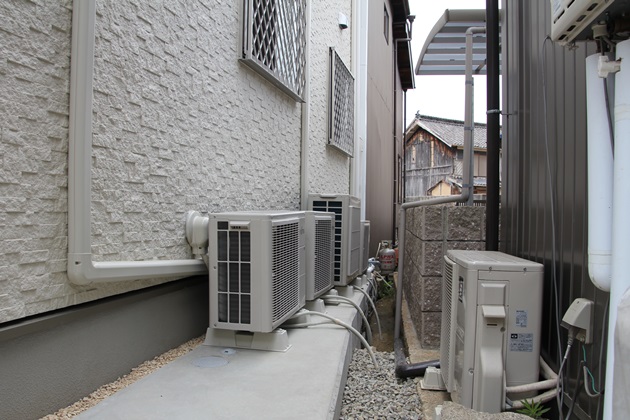 丁度夏場の施工で、室外機を設置する場所のコンクリートから優先に工事を進めさせて頂きました。