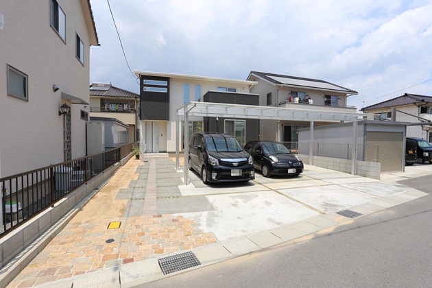 カーポートはとても存在感あり、広々とした外構で利便性とデザイン性の両方を実現したプランとなりました。