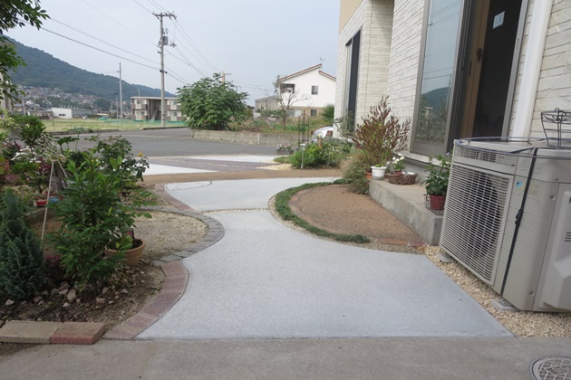 施主様が普段使われる駐車スペースからアプローチへの動線にもコンクリートを施工しました。